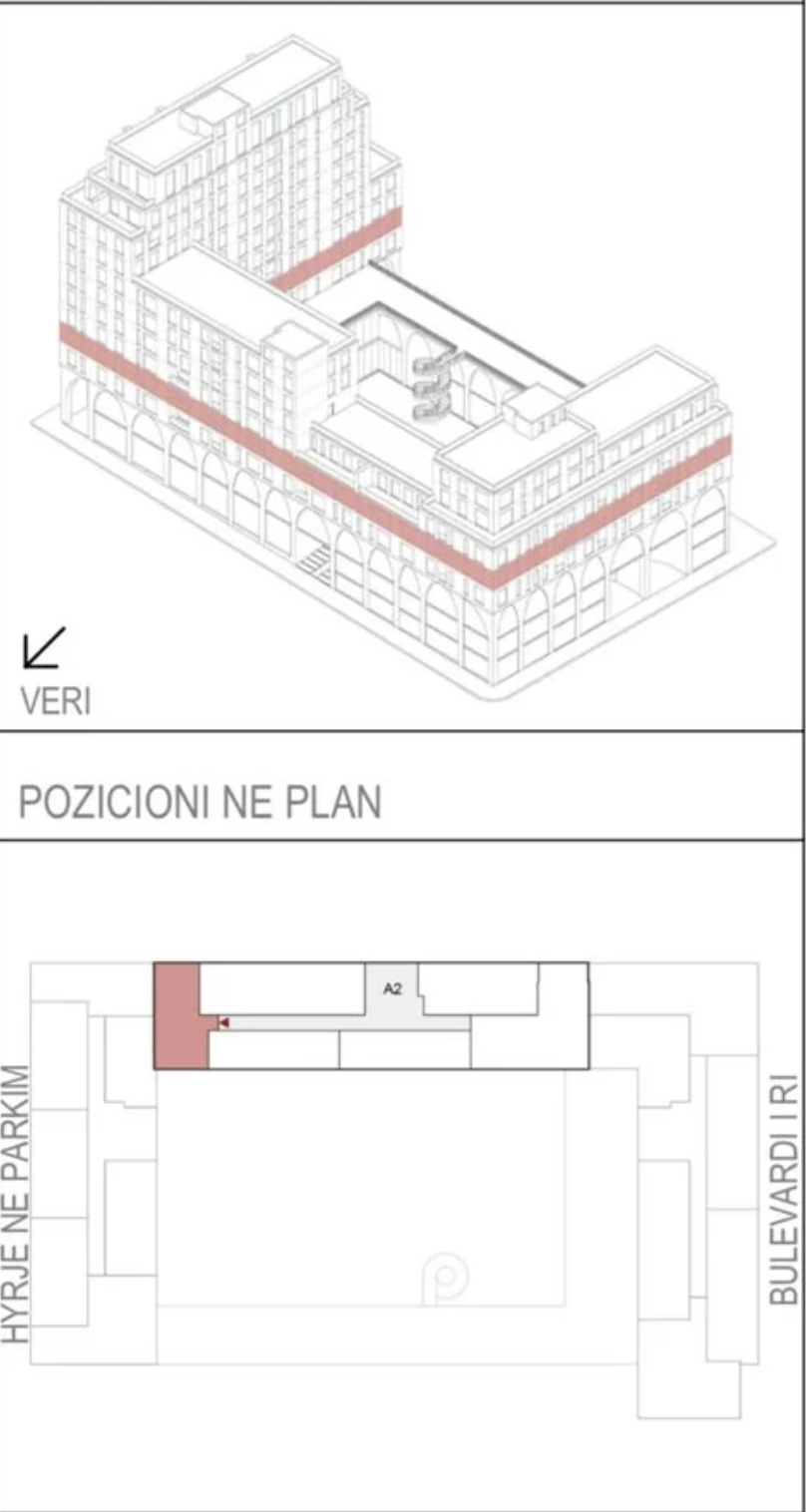 This distinctive 12-story building, designed as part of the ambitious New Boulevard urban development, stands as a prime example of modern urbanism in Tirana. The project is located on the road going straight to the main Skanderbeg Square, placing residents and businesses at the heart of the city's future growth.