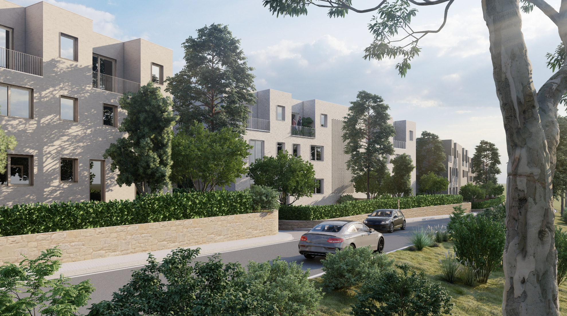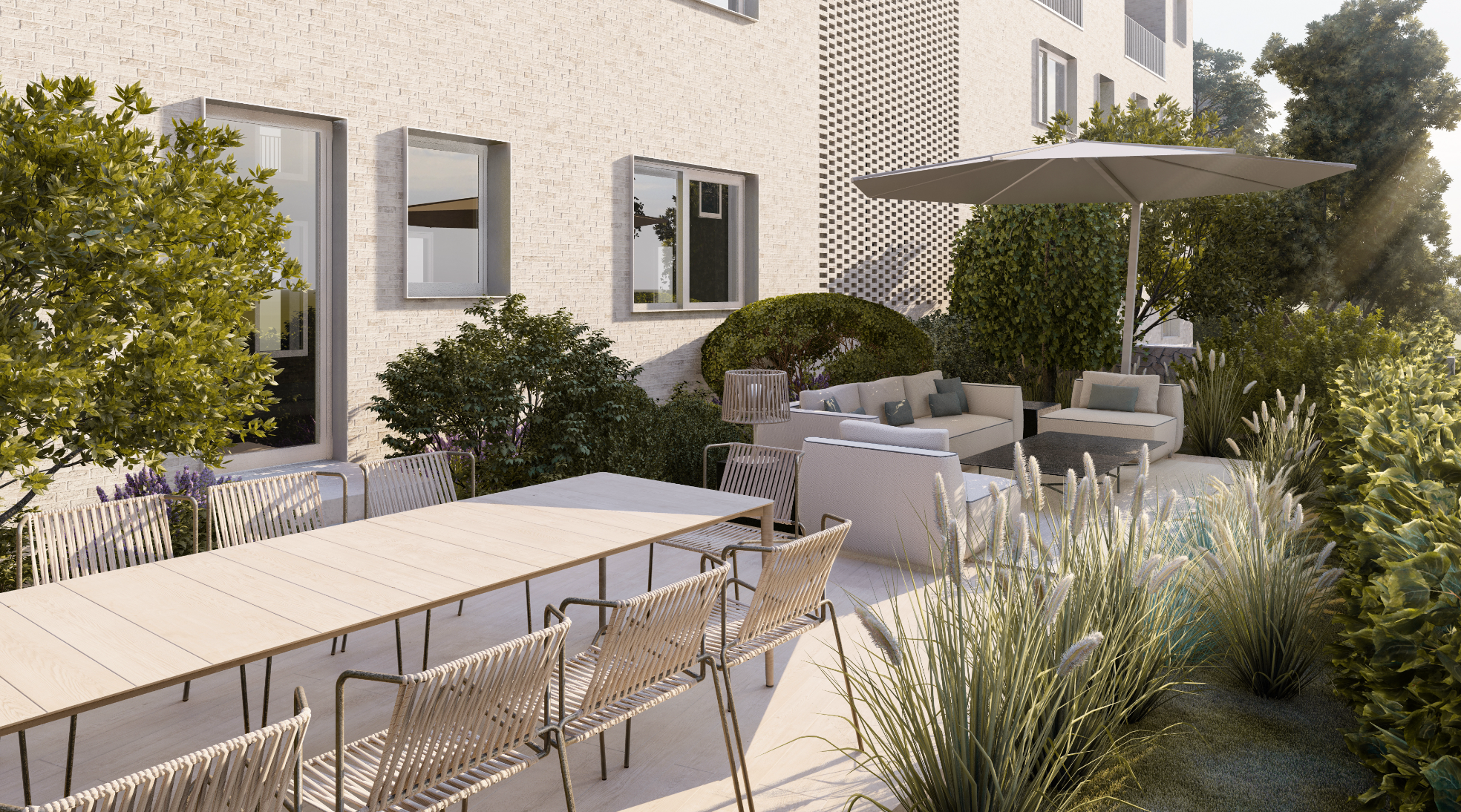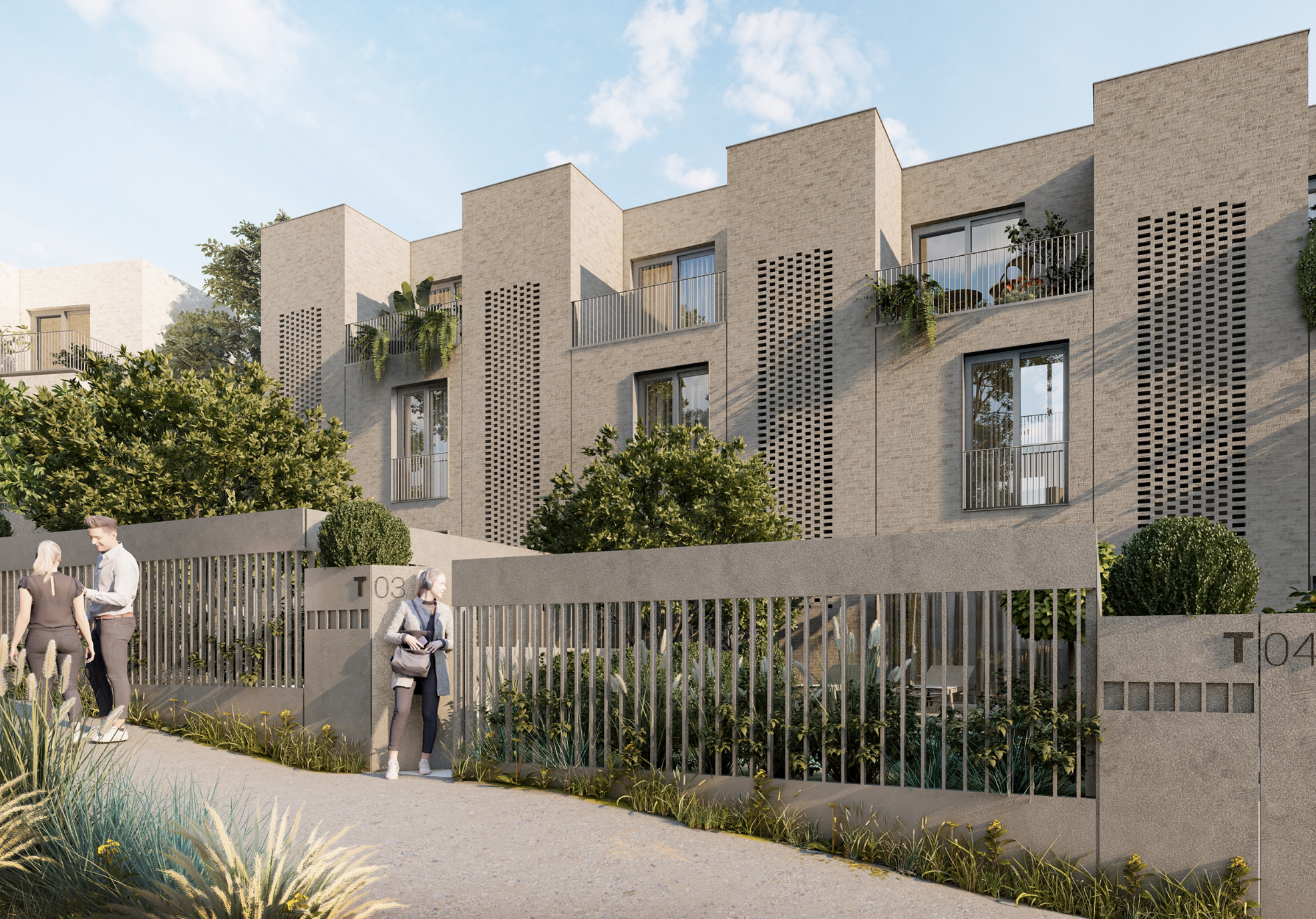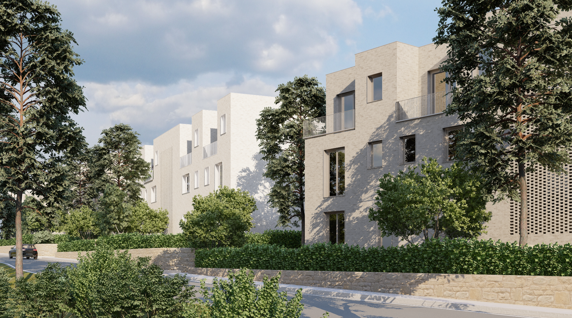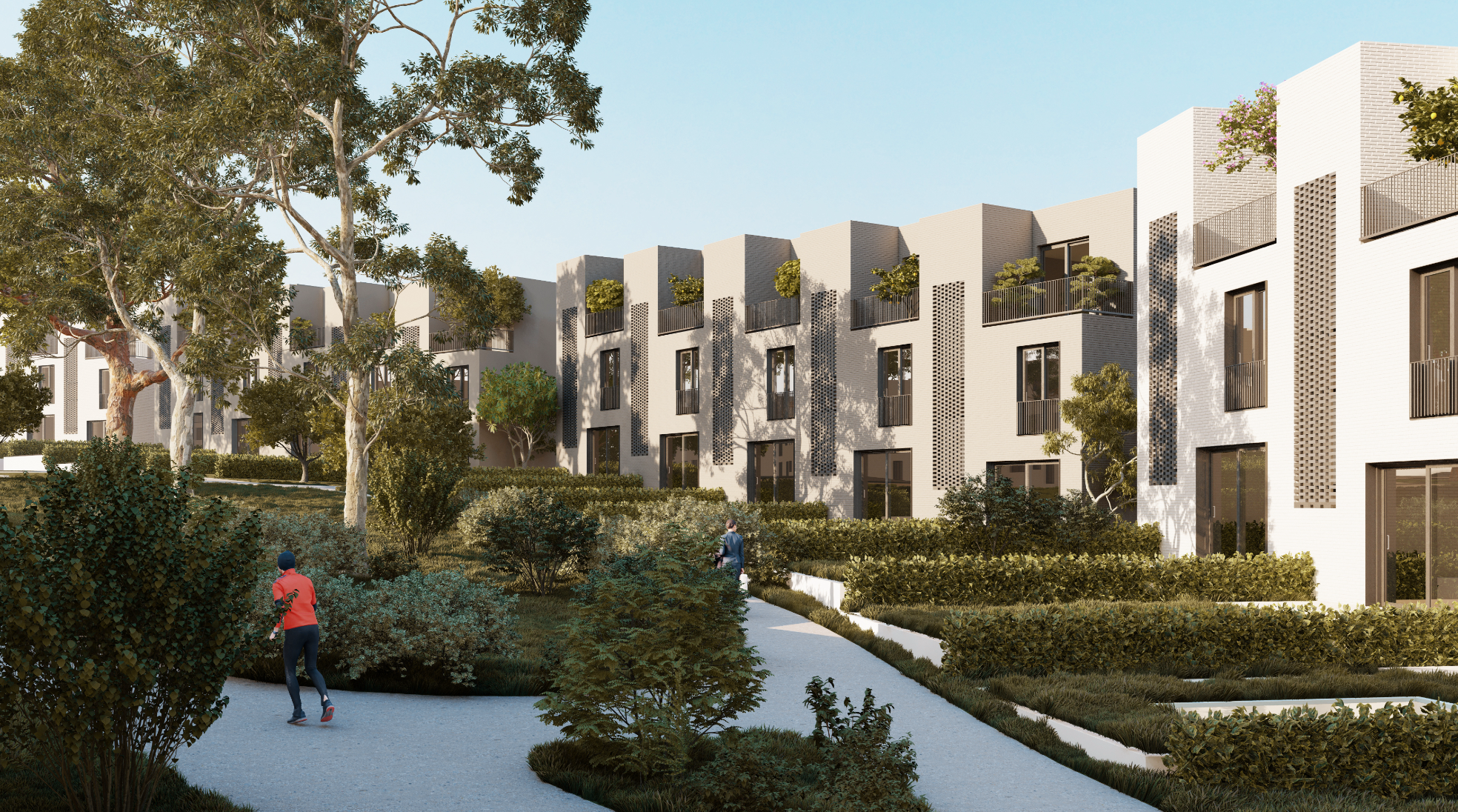 Low-rise buildings (2-3 stories) specifically oriented around a central park for maximum tranquility.