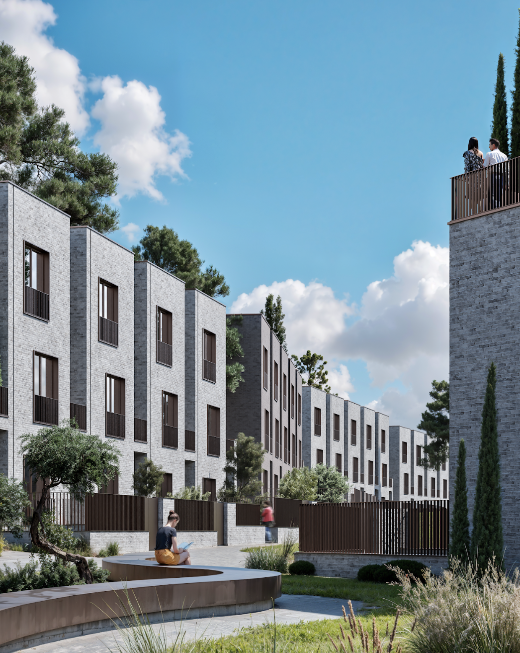 Located in the hilly area of Mjull-Bathore, very close to TEG and Farka Lake, "Park House" offers urban living surrounded by the greenery of a park. The residence consists of several two- and three-story buildings oriented around a central park, providing a life in complete harmony with nature.